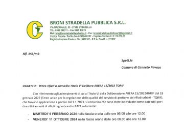 Avviso rivolto alle utenze domestiche del comune di Canneto Pavese modalita' di prenotazione ritiro a domicilio dei rfiuti ingombranti