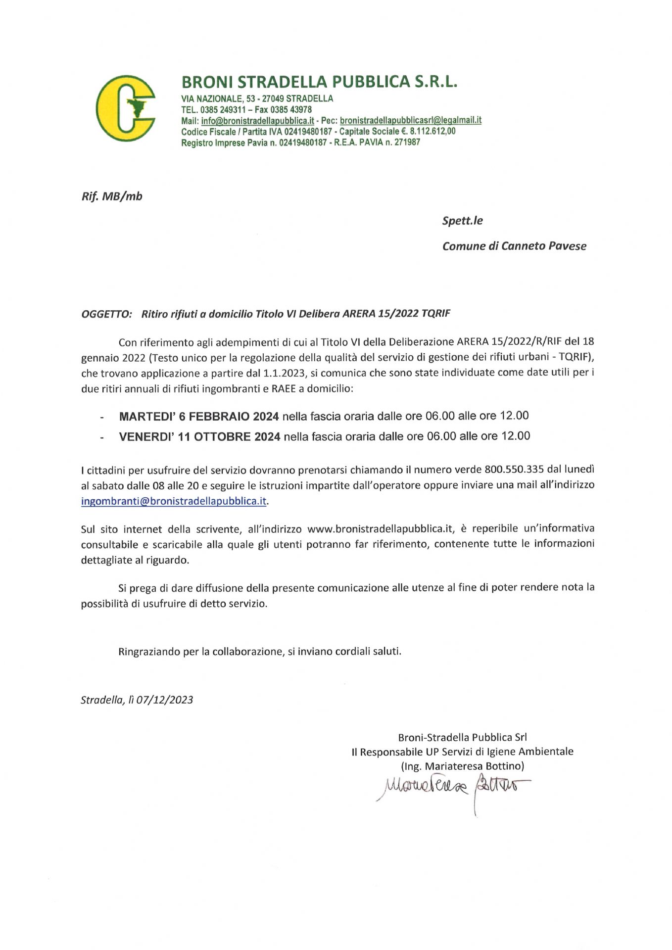 Date 2024_Ritiro a domicilio rifiuti ingombranti