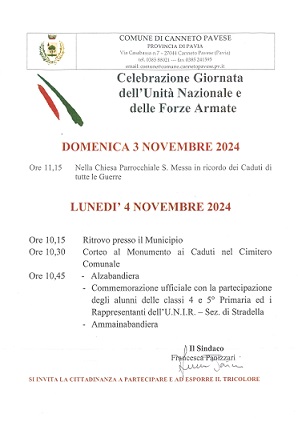 4 Novembre - Celebrazione Giornata dell'Unità Nazionale e delle Forze Armate