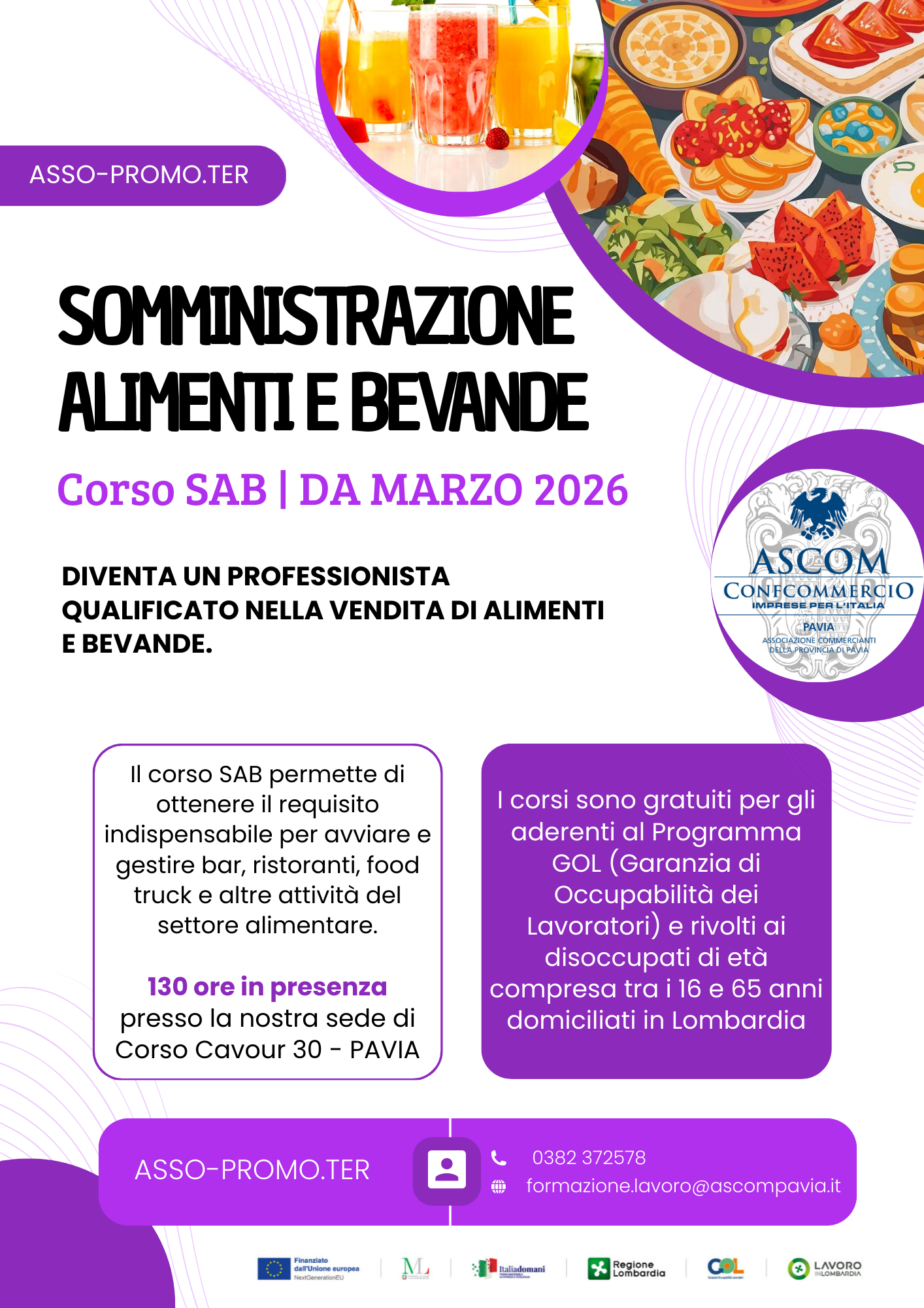 Per informazioni e modalità di iscrizione, si può contattare il numero 0382.372511 chiedendo di Repossi Sonia o Rossi Tatiana, oppure inviando una mail a "repossi@ascompavia.it" o "formazione.lavoro@ascompavia.com".