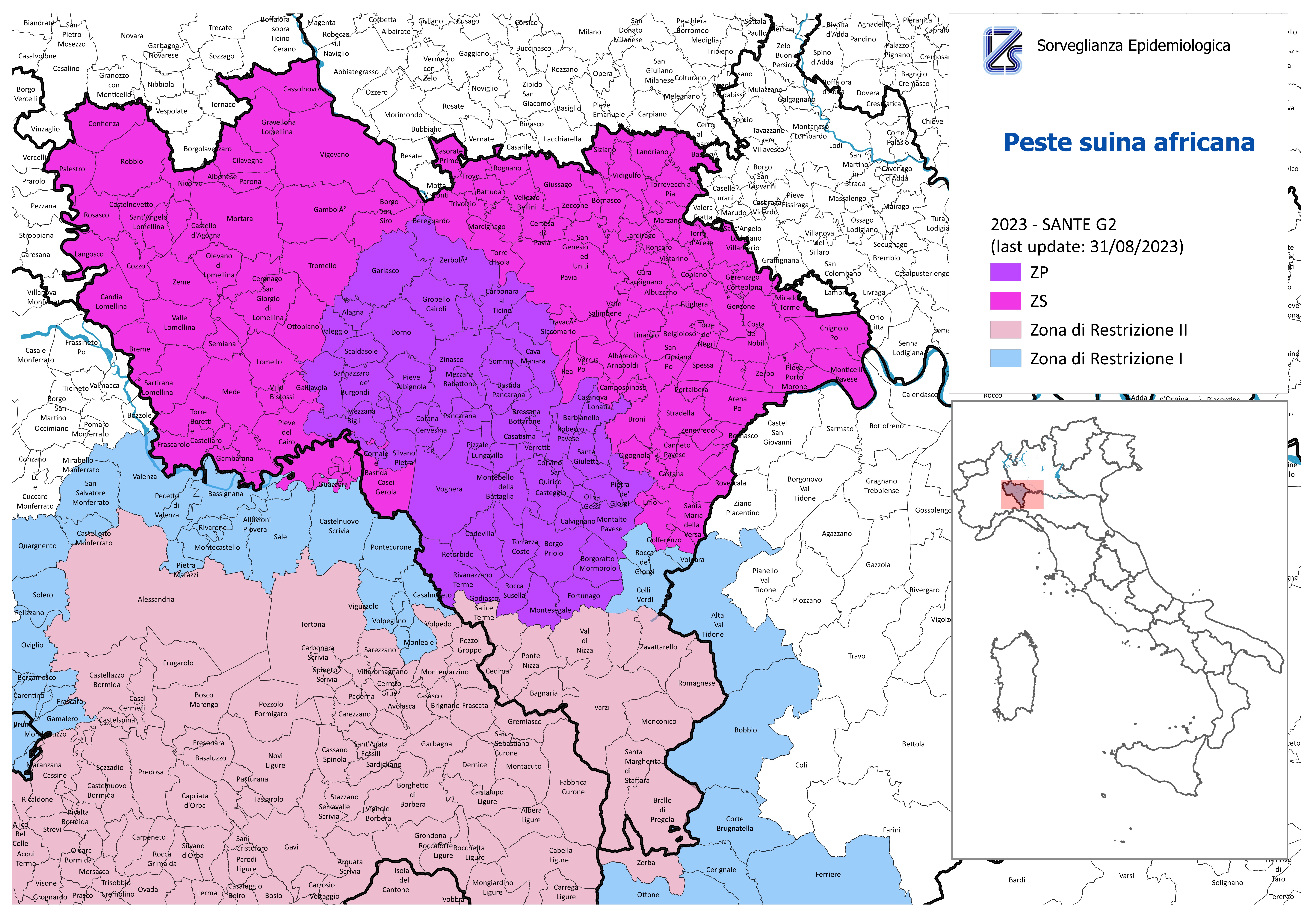Ordinanza n. 49790 del 05/09/2023 ATS Pavia "Istituzione zona di protezione e zona di sorveglianza per peste suina africana (PSA)"