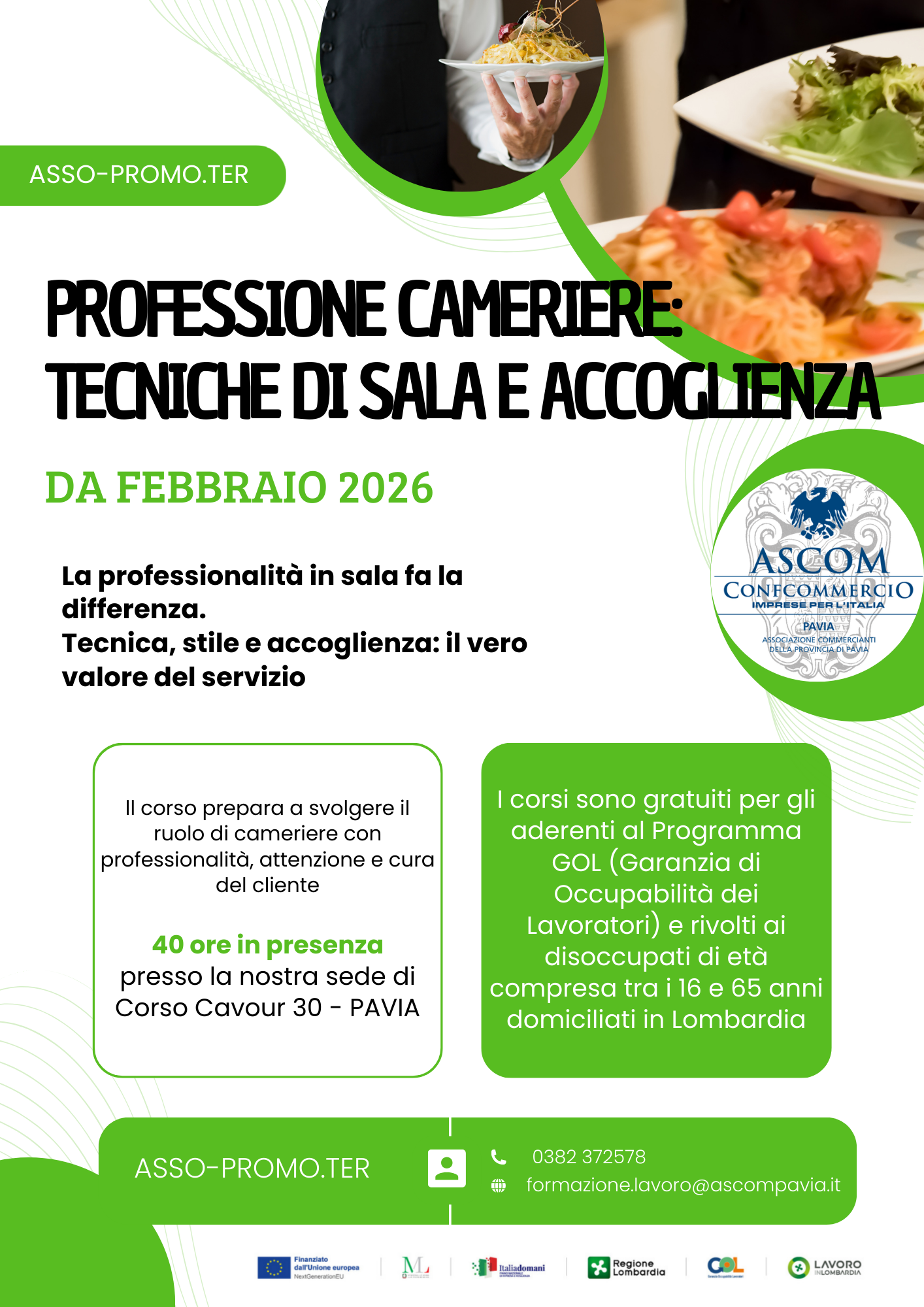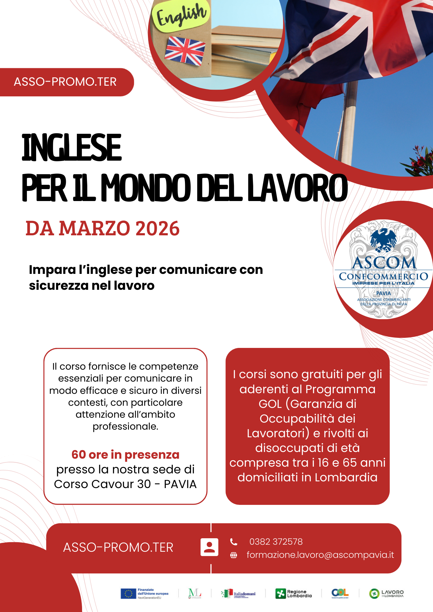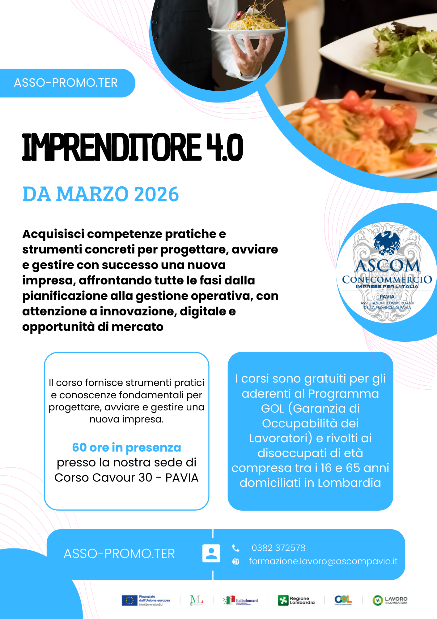 Per informazioni e modalità di iscrizione, si può contattare il numero 0382.372511 chiedendo di Repossi Sonia o Rossi Tatiana, oppure inviando una mail a "repossi@ascompavia.it" o "formazione.lavoro@ascompavia.com".